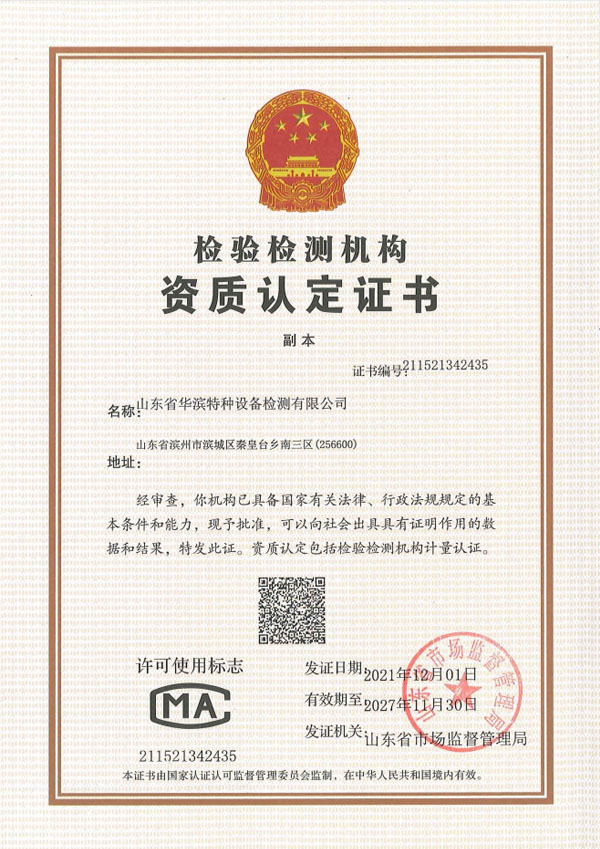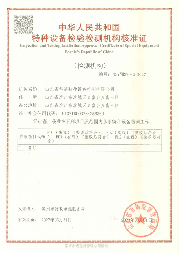 山東省華濱特種設(shè)備檢測有限公司